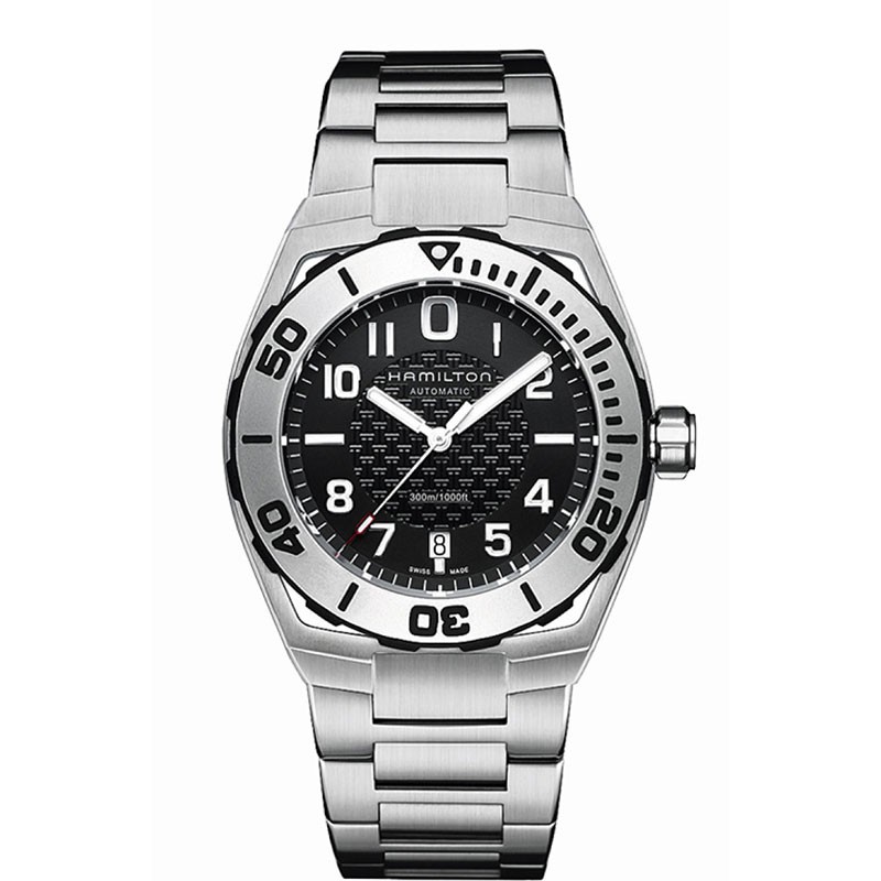 The ultra-modern maritime masterpiece takes its case shape from the iconic Hamilton Piping Rock piece from 1928. This eye-catching watch knows exactly how to maintain its established talking point status. Water resistant up to 30 bar (300m), the screw-down crown, rubber strap and unique rubber details emerging from stainless steel turning bezel make the perfect partner for serious underwater activities.