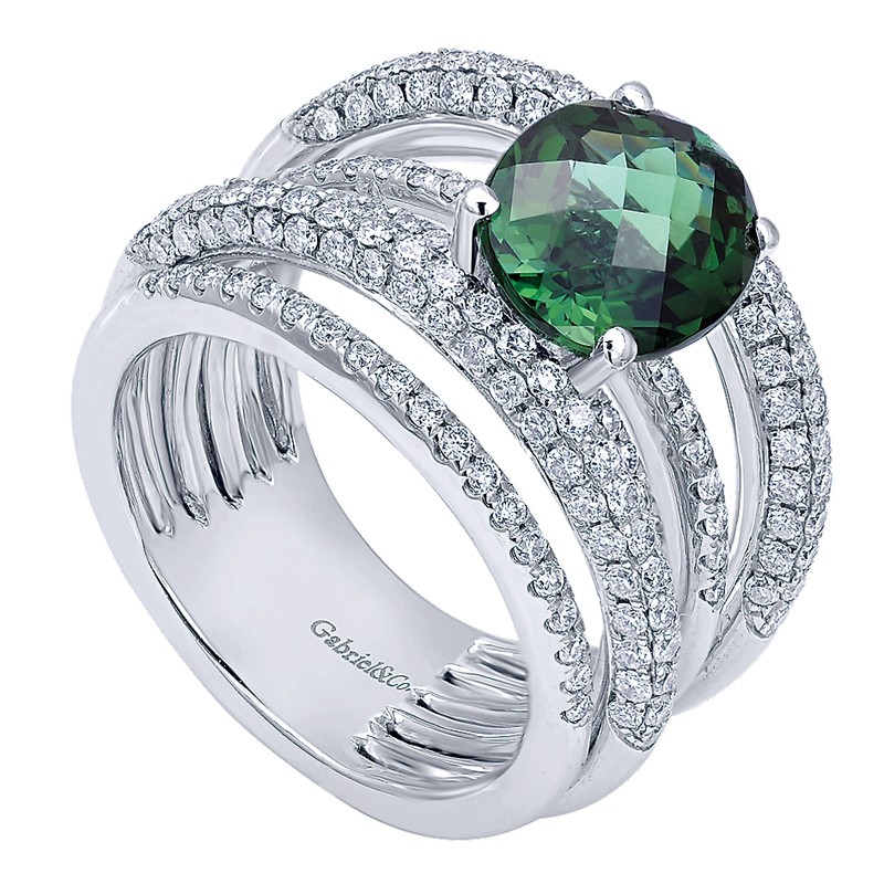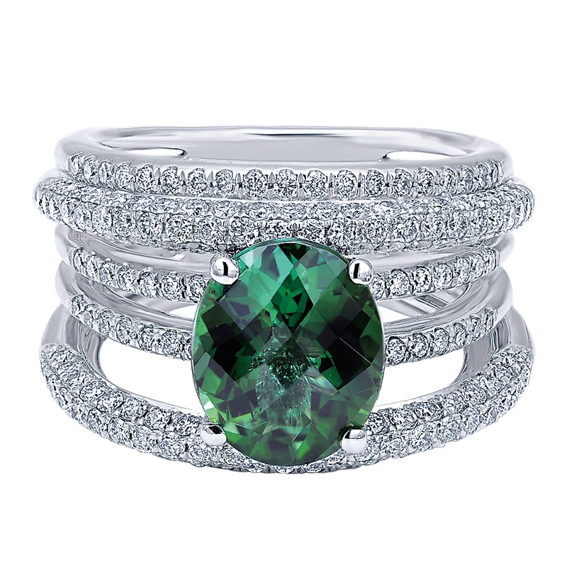 LR5199W44GT Ladies' Ring 14k White Gold Diamond Green Tourmaline Fashion. From the Lusso Color collection.
