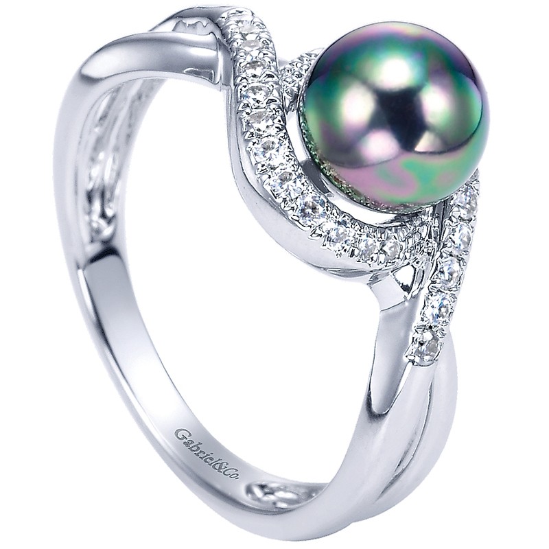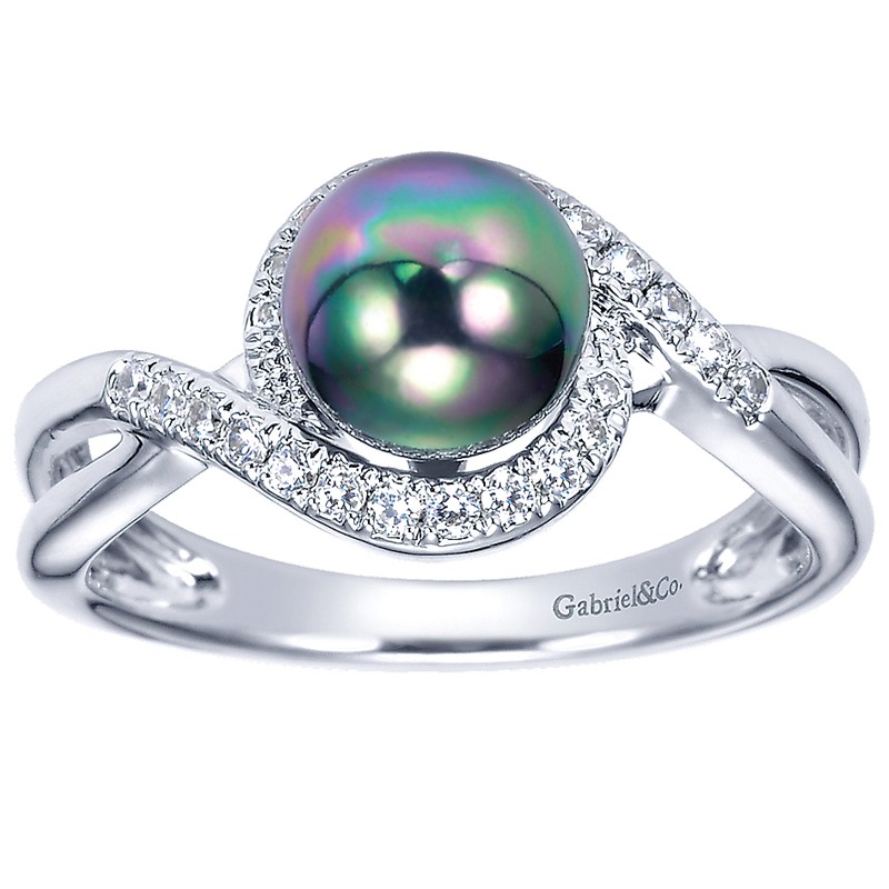 LR6081W45BP Ladies' Ring 14k White Gold Diamond Black Pearl Fashion. From the Lusso Color collection.