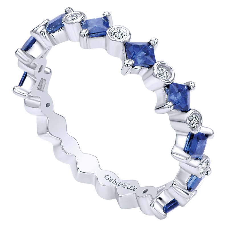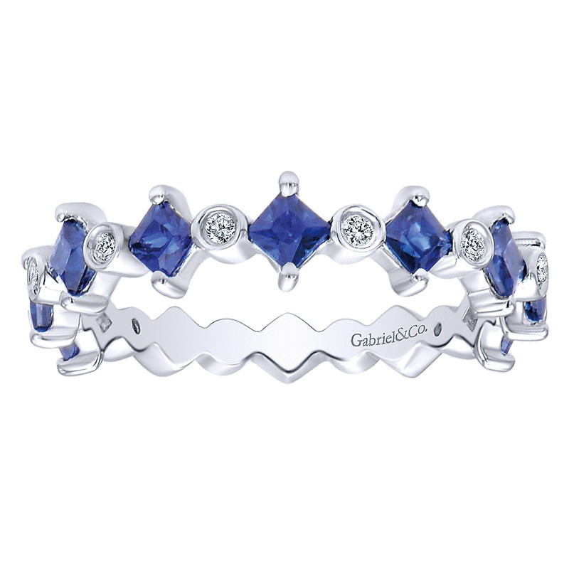 LR4586W44SA Ladies' Ring 14k White Gold Diamond And Sapphire Stackable. From the Stackable collection.