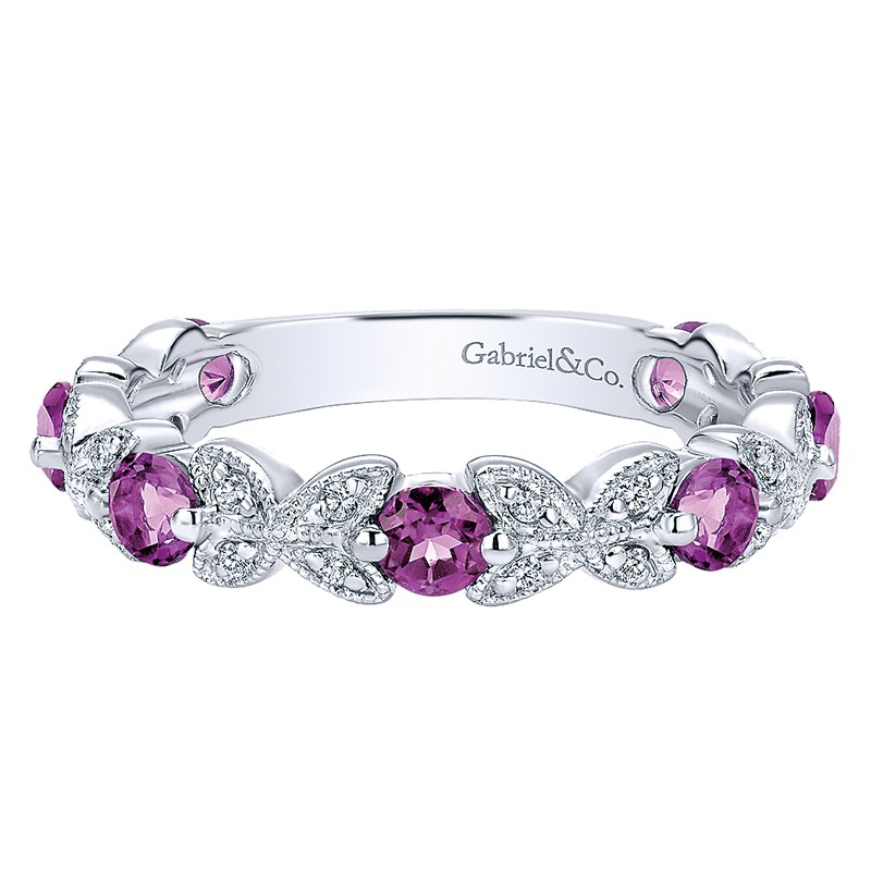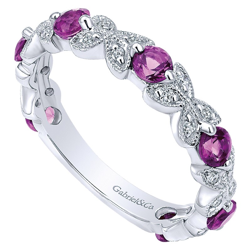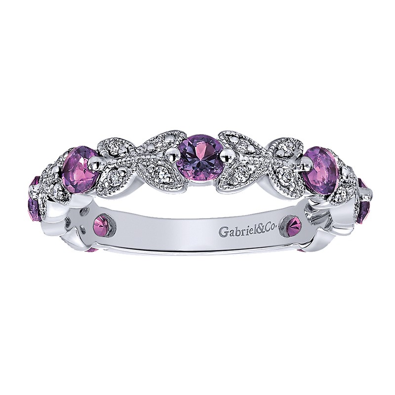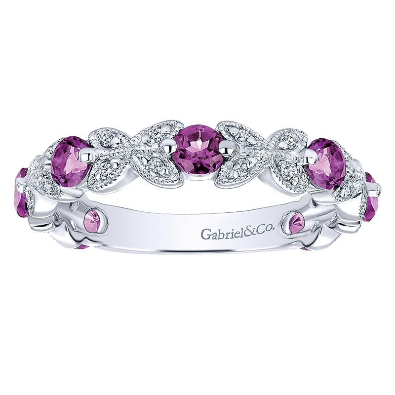LR4847W44AM Ladies' Ring 14k White Gold Diamond Amethyst Stackable. From the Stackable collection.