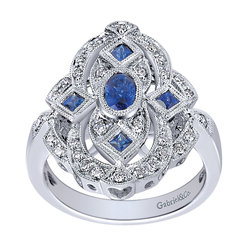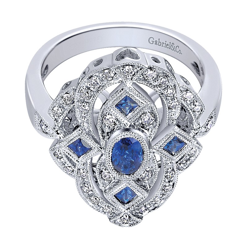 LR4405W45SA Ladies' Ring 14k White Gold Diamond And Sapphire Fashion. From the Victorian collection.