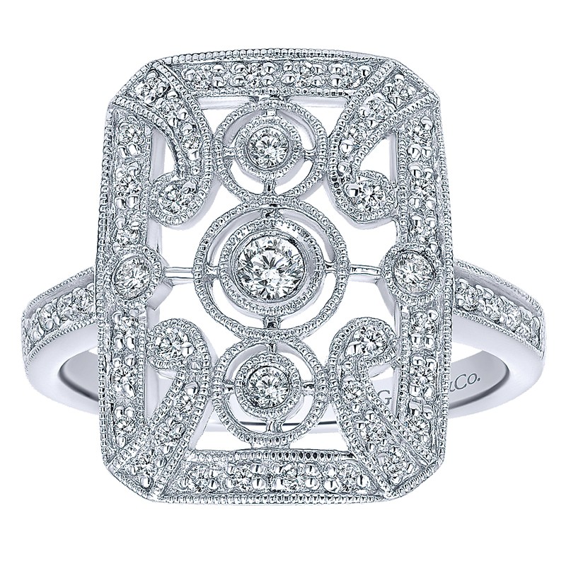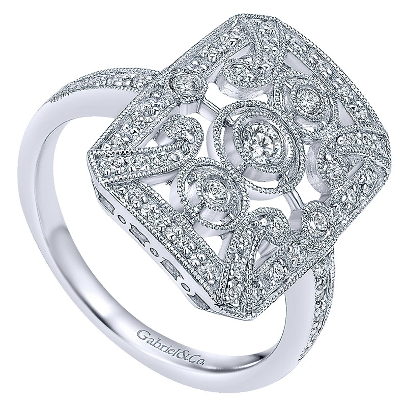 LR4684W44JJ Ladies' Ring 14k White Gold Diamond Fashion. From the Victorian collection.