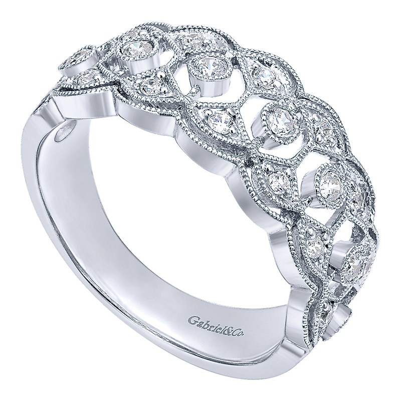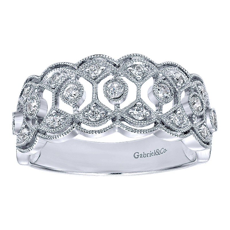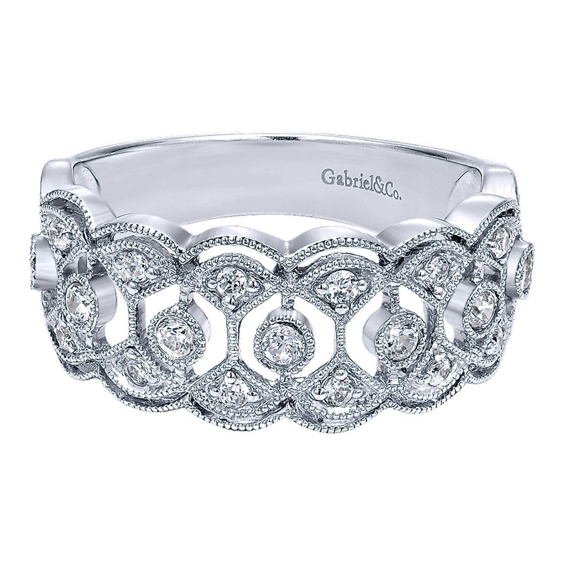 LR4784W44JJ Ladies' Ring 14k White Gold Diamond Wide Band. From the Victorian collection.