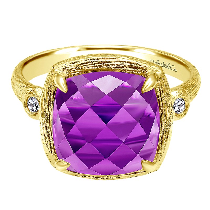 LR5697Y45AM Ladies' Ring 14k Yellow Gold Diamond Amethyst Fashion. From the Souviens collection.