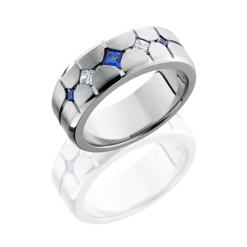 Cobalt Chrome 9mm Beveled Bans with Flush Set Sapphires and Diamonds