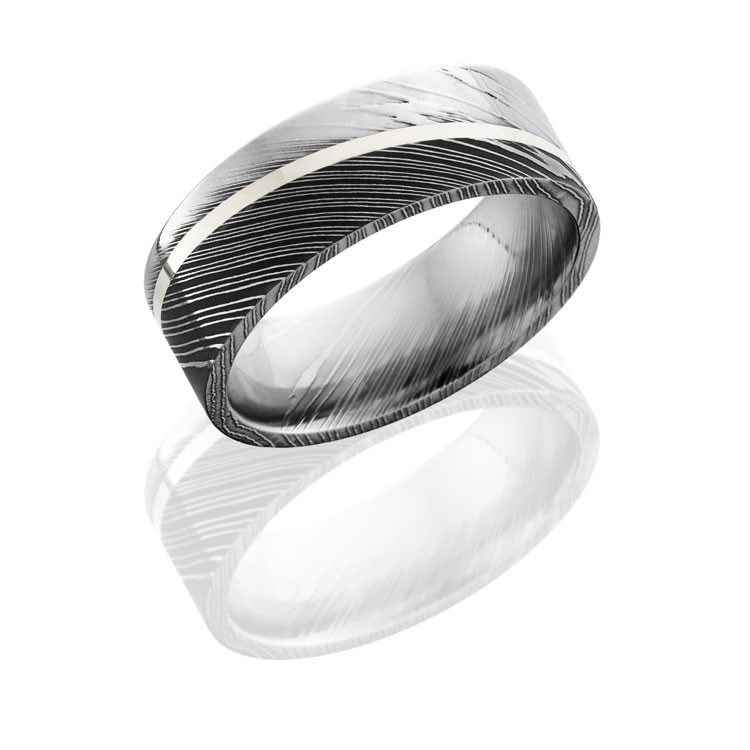 Lashbrook Damascus 8mm Flat Band With 1mm Sterling Silver Set At An Angle D8F11ANGLED/SS