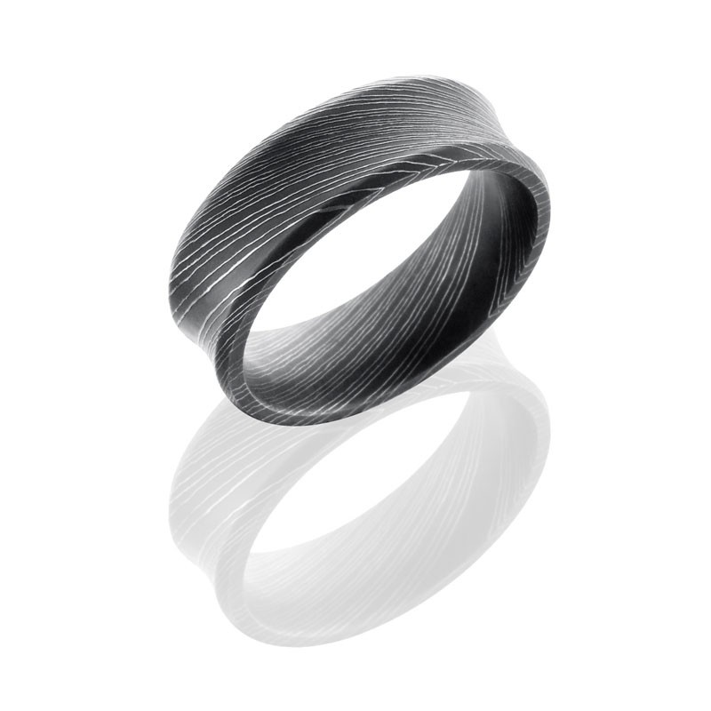 Lashbrook Damascus Steel 7mm Concave Band With Beveled Edges D7CB