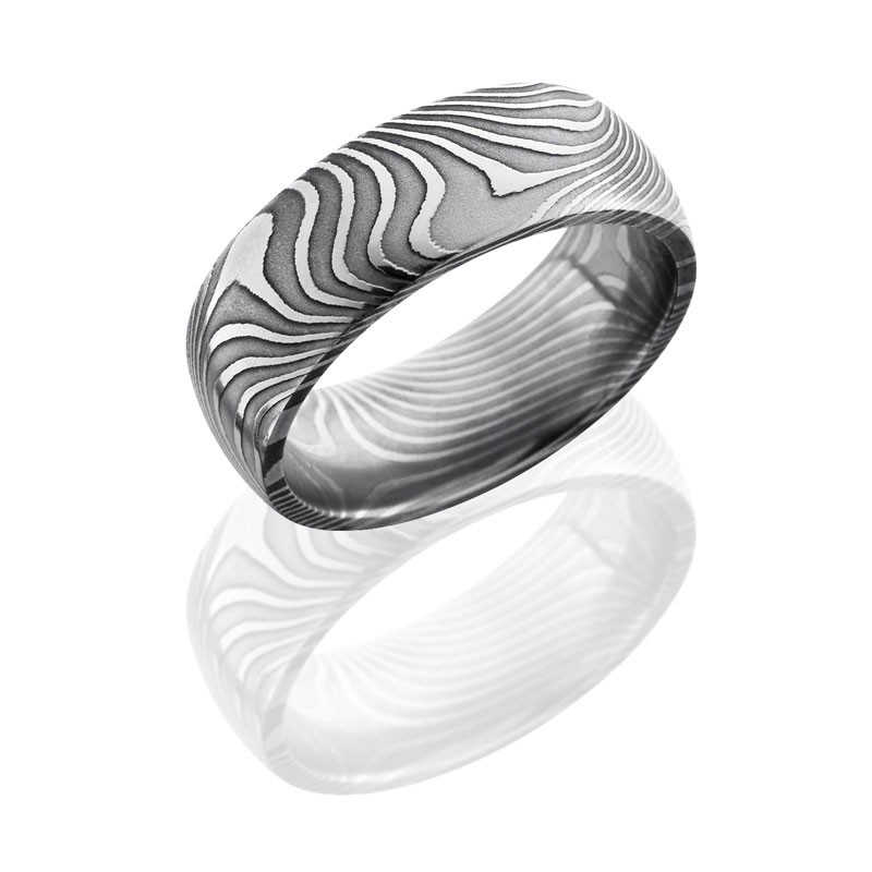 Lashbrook Flat Twist Patterned Damascus Steel 8mm Domed Band D8DFLATTWIST