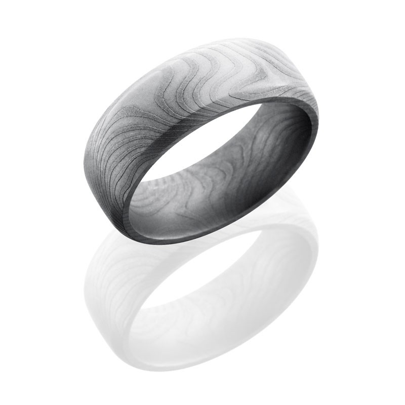 Lashbrook Flat Twist Patterned Damascus Steel 8mm Domed Band With Beveled Edges D8DBFLATTWIST