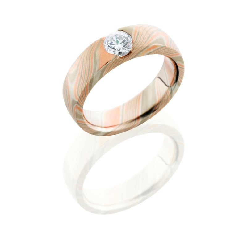 Mokume 5mm Domed with 14KR, 14KW, PD, SS and Lannyte