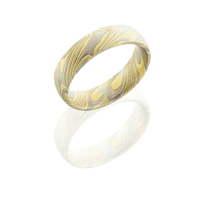 Lashbrook Mokume 5mm Domed With 14Kr, 14Kw, Pd, Ss M5D18KY14PWSS