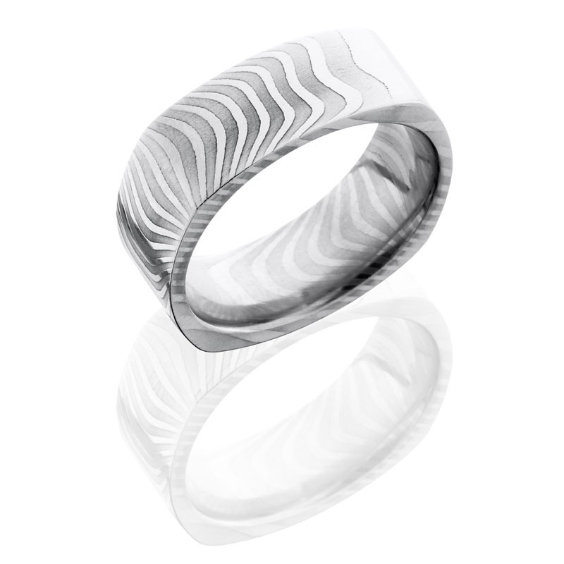 Lashbrook Tiger Patterned Damascus Steel 8mm Flat, Square Band D8FSQTIGER