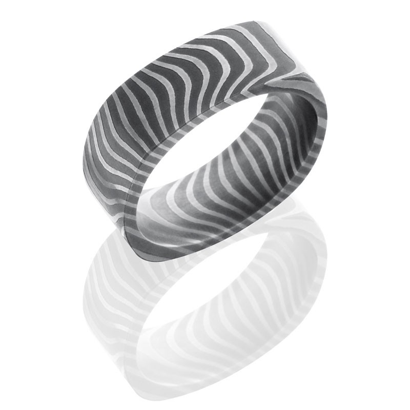 Lashbrook Tiger Patterned Damascus Steel 8mm Flat, Square Band D8FTIGER
