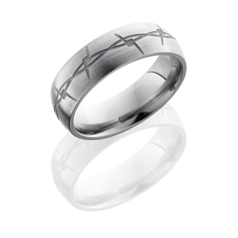 Lashbrook Titanium 7mm Domed Band With Barbed Wire Pattern 7DBARB