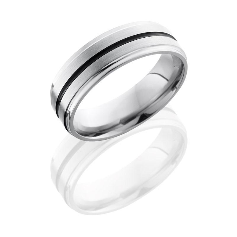 Lashbrook Titanium 7mm Flat Band With Grooved Edge And 1mm Antiqued Groove 7FGE11A