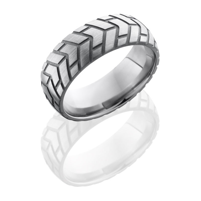 Lashbrook Titanium 8mm Domed Band With Tire Tread Pattern 8DCYCLE3