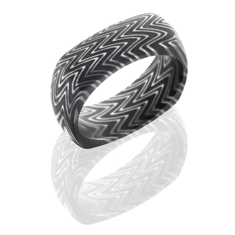Lashbrook Zebra Patterned Damascus Steel 8mm Domed, Square Band D8DSQZEBRA