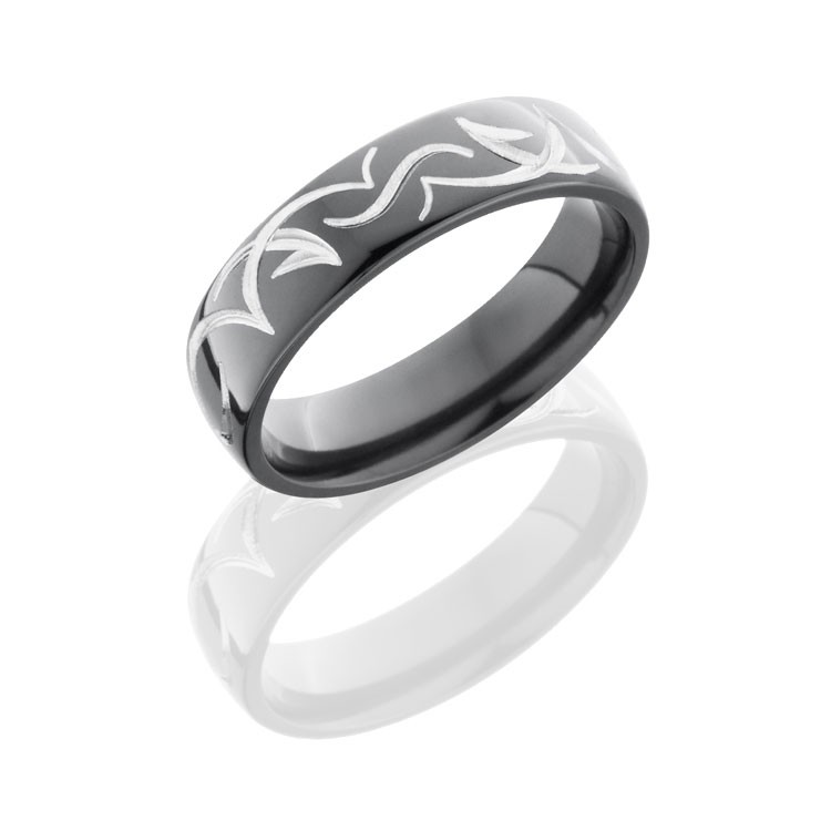 Lashbrook Zirconium 6mm Domed Band With Tribal Pattern Z6D/TRIB