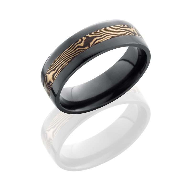 Lashbrook Zirconium 7mm Flat Band With 3mm 14Kw And Shakudo Mokume Z7F13/M14KWSH