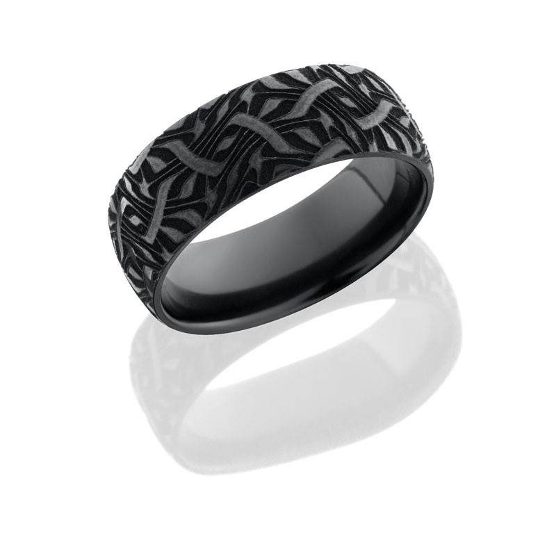 Lashbrook Zirconium 8mm Domed Band With A Laser Carved Escher 2 Design Z8D/BLCVESCHER2