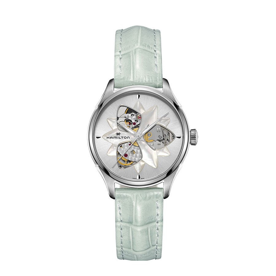 Living up to its name by offering fascinating views from both sides the 34mm Jazzmaster Open Heart Lady displays a unique architecture of both dial and movement while Hamilton's new H-10 decorated caliber ensures an 80-hour power reserve that will keep it beating steadily after an exceptional watch-free weekend.
