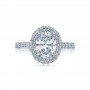 A dazzling double bloom surrounds this glamorous, diamond-bedecked ring, fit for an oval shaped center diamond. Feminine details make this ring the ultimate in elegance.