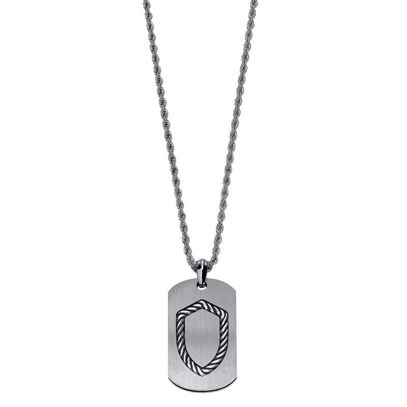 Steel Dog Tag Pendant with Silver Rope shield design on a Steel Rope Chain