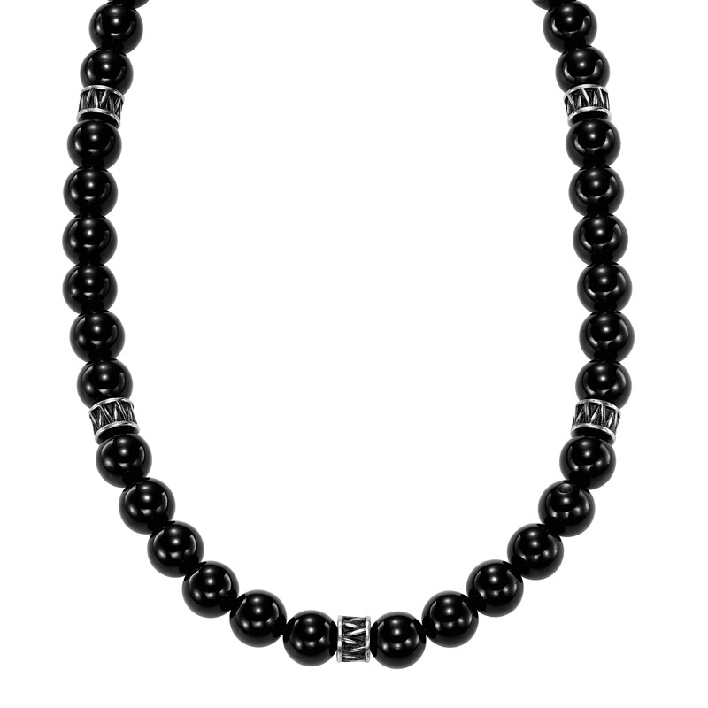 Onyx Stone Bead and Steel Rondelle Necklace with toggle clasp