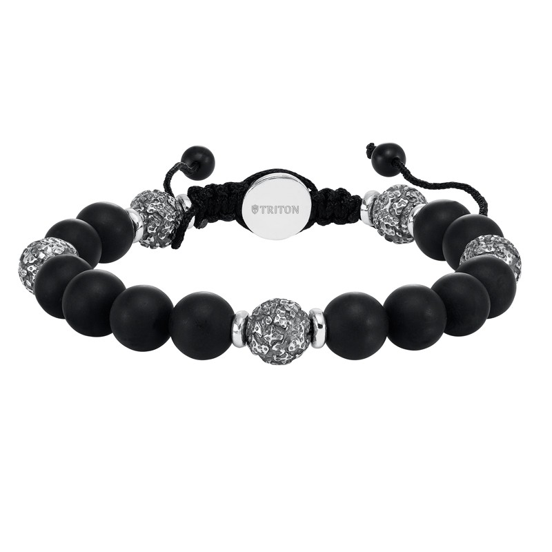 Weathered Sterling Silver and Matte Onyx Beaded Bracelet