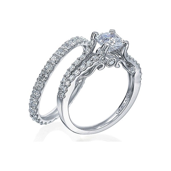 This beautiful engagement ring setting is from the Verragio Insignia Collection and features a split shank with round brilliant cut diamonds to enhance your choice of a center stone. This setting has intricate detail for an elegant look.